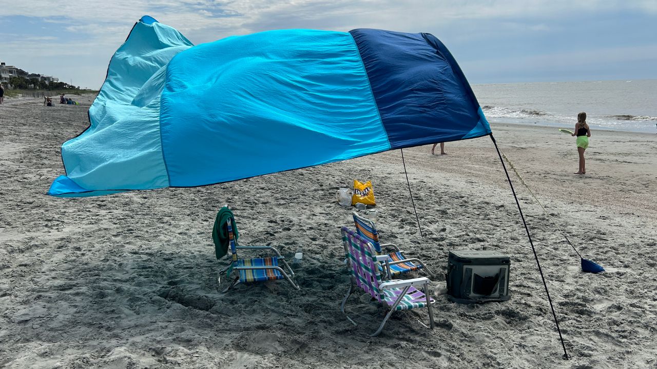 Everyone has different needs in a beach tent, so think carefully before you purchase one! Consider how many people need to fit under it. You may not all be under it all the time, but you don’t want everyone to feel claustrophobic. Think about if you’re OK with it not having a floor (like a traditional tent) or if you want something to cover up the sand. It will still get sandy, but not as much as without the floor. Will there be someone to help you set it up? Read reviews and see if it’s something one person can put up alone or if it will take an extra set of hands. Some of you might be going solo to the beach with kids and will need something easy!