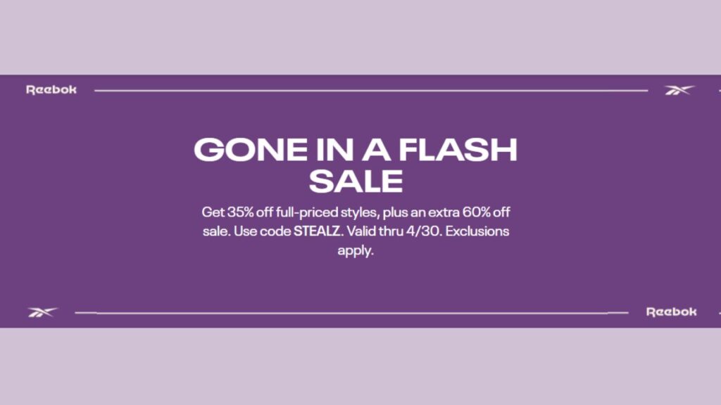 Head to Reebok to shop their Gone in a Flash Sale. Get 35% off full-priced styles, plus an extra 60% off sale styles.