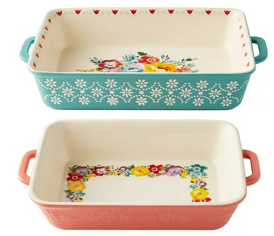 Sweet Romance Blossoms Assorted Color 2-Piece Rectangular Ceramic Baking Dishes – $16.48 (reg. $21.97)