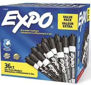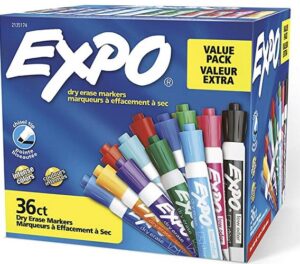 Head to Amazon where you can get 36 count EXPO Low-Odor Dry Erase Markers, Chisel Tip on sale for $14.99. Choose from a box of assorted colors or black whiteboard markers.