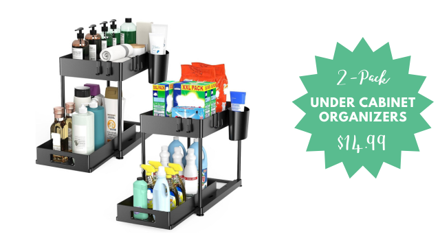 2 Pack Under Sink Organizer, 2 Tier Cabinet Organizers $14.99 (reg. $29.99)