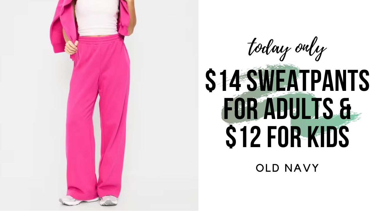 Today only, score $14 sweatpants for adults at Old Navy and $12 for kids.