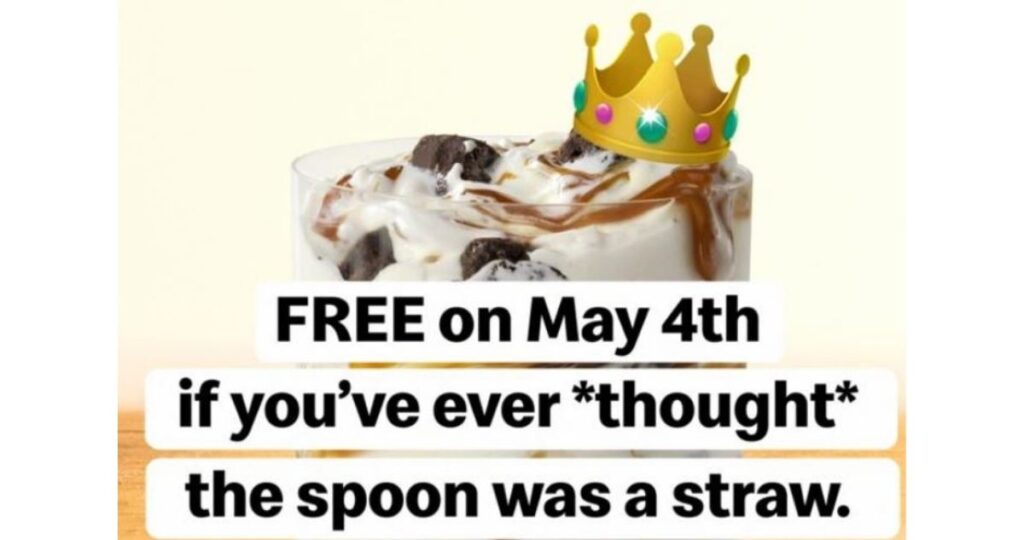 Here’s a freebie you won’t want to miss! Mark your calendars on 5/4 because McDonald’s is offering a Free Regular Size Carmel Brownie McFlurry at participating stores.