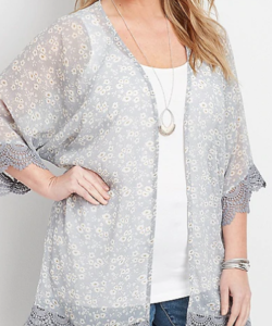 Plus Size Blue Floral Crochet Trim Kimono $12.78 (reg. $39)