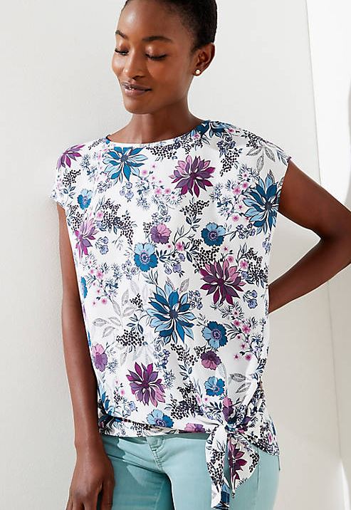 Floral Mixed Media Tie Hem Top – $19.88 (reg. $49.50)