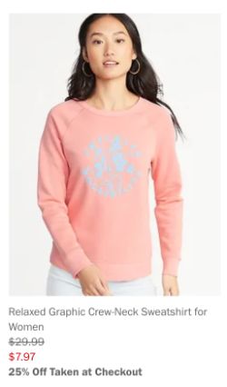 Now through Tuesday only, get an extra 25% off your entire purchase at Old Navy. You’ll see the discount automatically at checkout.