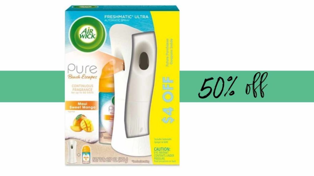 Print an Air Wick coupon to get a deal on a Freshmatic starter kit at Target. Pick up the Pure Beach Escape scent and submit an Ibotta rebate to get the kit for half off!