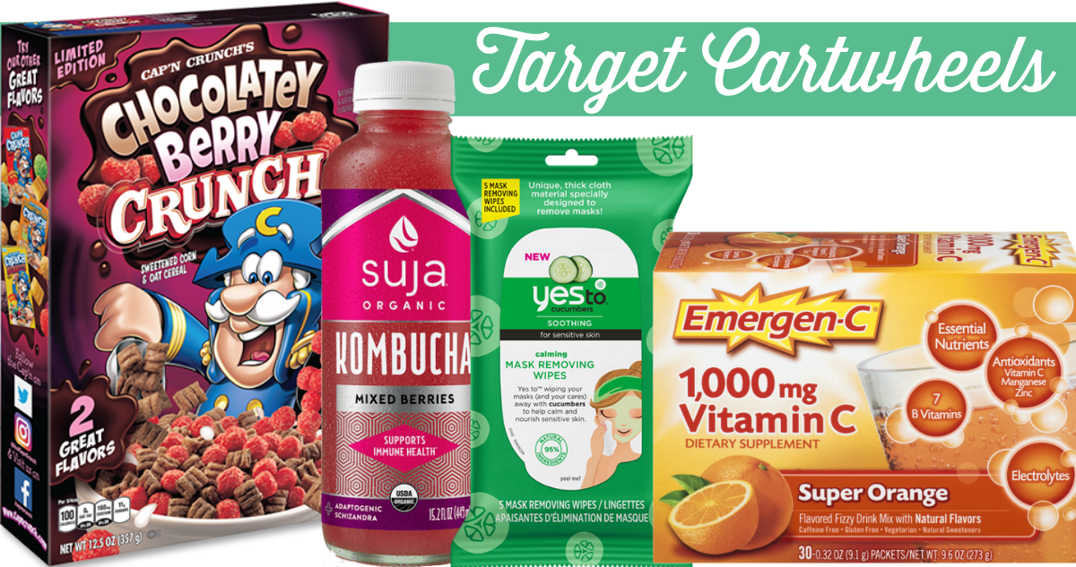 Here are several deals to grab with some new Target Cartwheel offers. Save on Suja Kombuhca, Emergen-C, Cap’n Crunch Cereal and more!