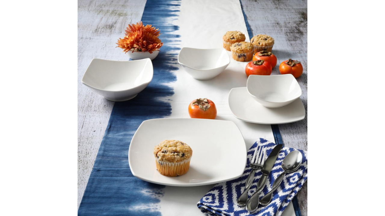 You can choose between two styles, the Camrose or the Brentwood. Both are white, which makes for a classic and timeless table setting!