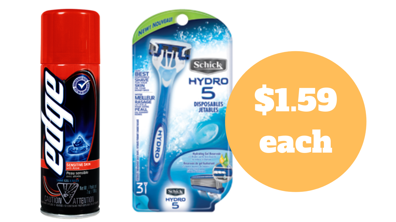 Stock up on Edge Shave gels and Schick disposable razors for only $1.59 each after rewards and coupons.