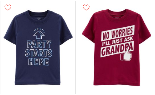 Shop Carter’s Presidents Day Sale through 2/18 and get graphic tees B1G2! You can pay as little as $4 per shirt when you buy three!