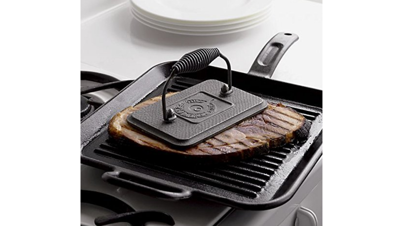 Head over to Amazon or Walmart and get the Lodge Cast Iron Grill Press for only $11.80 (reg. $19)!
