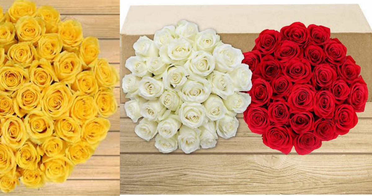 Choose from red, white, yellow, pink mixed, red & white mixed, and bi-color roses.