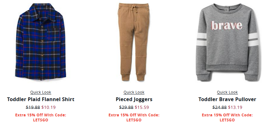 Even better, save an extra 15% off with code LETSGO at checkout. Grab deals on jeans, dresses and more for the kiddos.