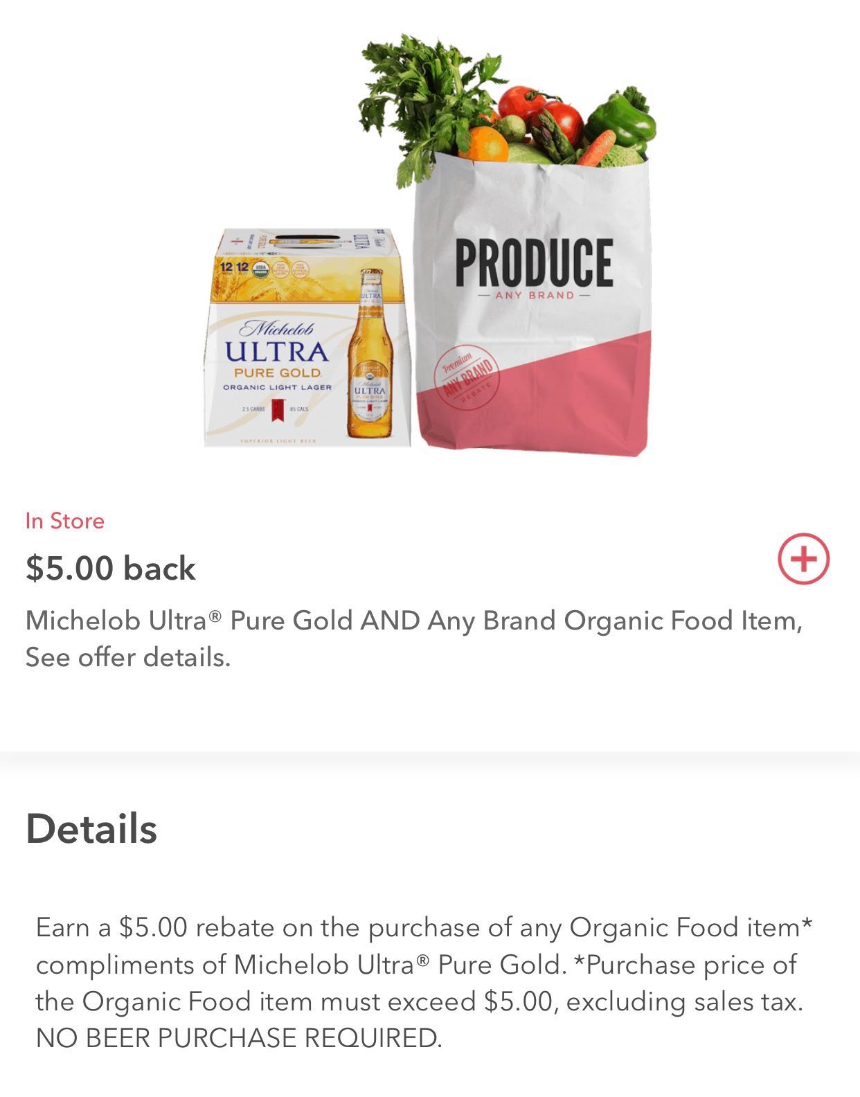 There is no beer purchase required, so you can grab a $5 Organic item for Free after the rebate.