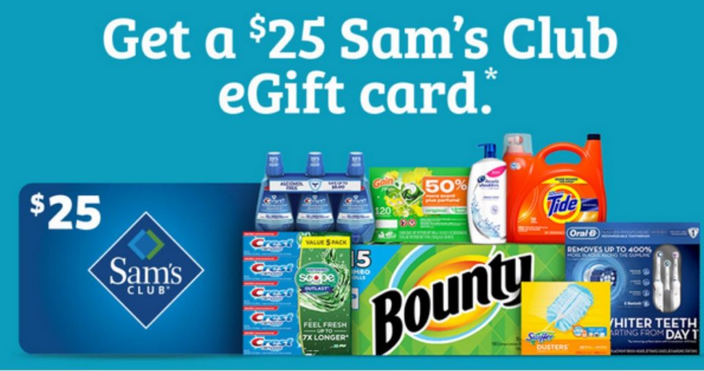 Sam’s Club Members can get a free $25 Sam’s Club eGift Card when you purchase $100 or more of participating products in one transaction either online or in-store by using the Scan & Go app!