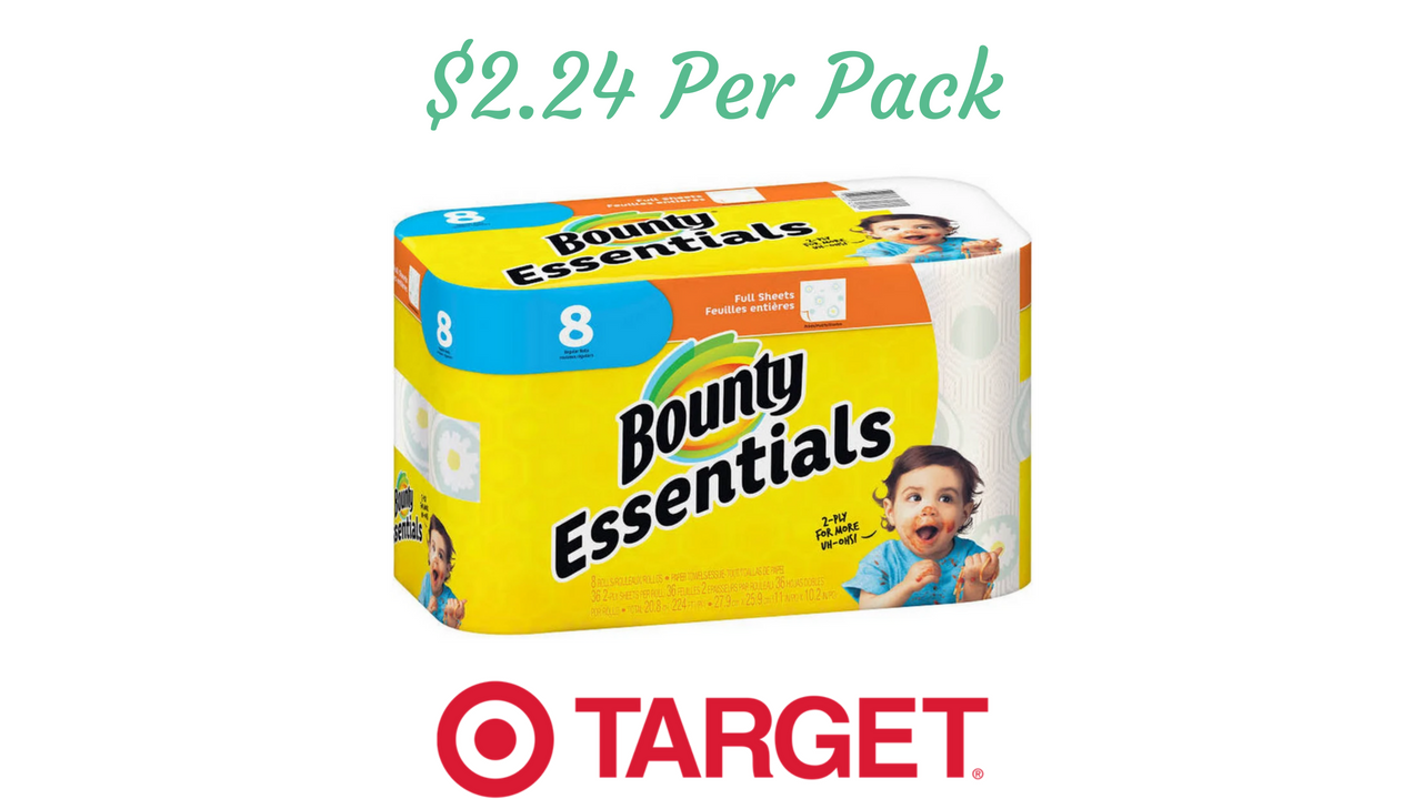 Don’t miss out on a great deal on Bounty Essentials Paper Towels! Print a Bounty coupon and use the deal scenario below to pick up paper towels for $2.24 per pack. Just 28¢ per roll!