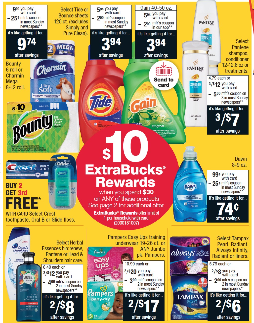 I shared recently that I always try to wait for the $10 ExtraBuck Reward deals (ECB) on household items and diapers, well this week CVS is running it! You’ll get $10 ECB when you buy $30 select P&G Items.