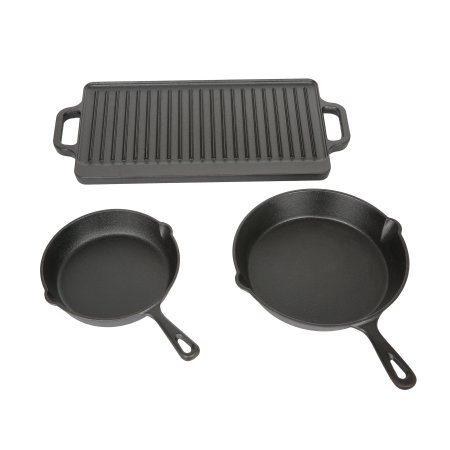 Ozark Trail 3 Piece Cast Iron Skillet Set with Griddle, $12 (reg. $16)
