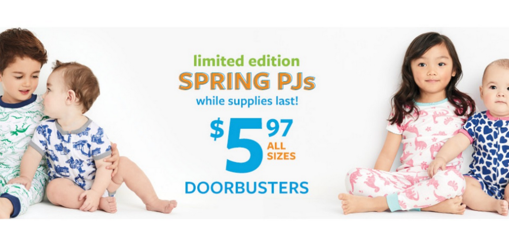 Head over to Carters where you can grab Kids Spring Pajamas in all sizes for $5.97, regularly $16.