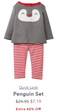 Prices start at just $4.79 for bodysuits and pants and $7.19 for full pant and top sets.