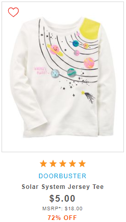 Today only, Carter’s is offering $5 tees and bodysuits for boys and girls! This sale is online only and applies to all sizes.