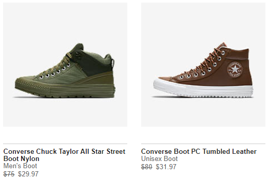 If you’re looking for some new converses, here is a deal for you. Right now you can get 60% off all Converse Boots, including waterproof boots, fur lined boots and more.