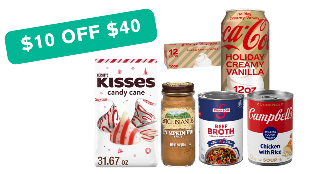 Amazon is currently offering $10 off $40 Thanksgiving Grocery Essentials, including baking needs, beverages, and soups!