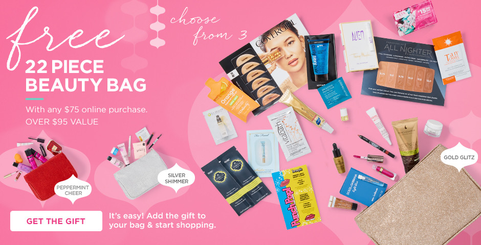 You will also get a FREE 22-Piece Beauty Bag with any $75 online purchase.