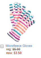There are tons of colors, patterns and styles to choose from and these are regularly $14.88 to $16.88, so this is a great deal. Hats and gloves are on sale for $3.50, too (reg. $5)!