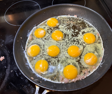 First you’ll want to scramble the eggs. I didn’t season them because I felt like my sausage had plenty of seasoning.