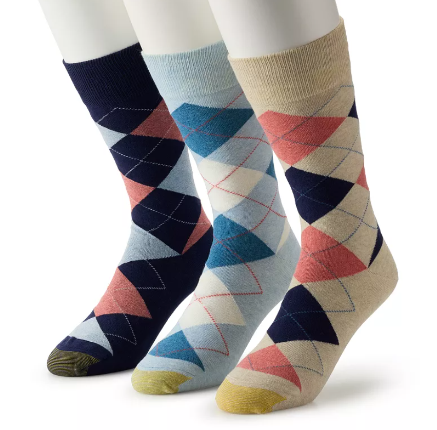 Men’s GOLDTOE 3-pack Carlyle Argyle Crew Socks, pink/navy/taupe – $8.80 (reg. $20)