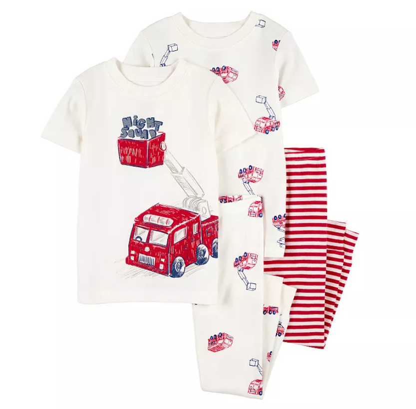 Baby Boy Carter’s 4-Piece Fire Truck Cotton Pajama Top & Pajama Pants Set – $12 (reg. $20)