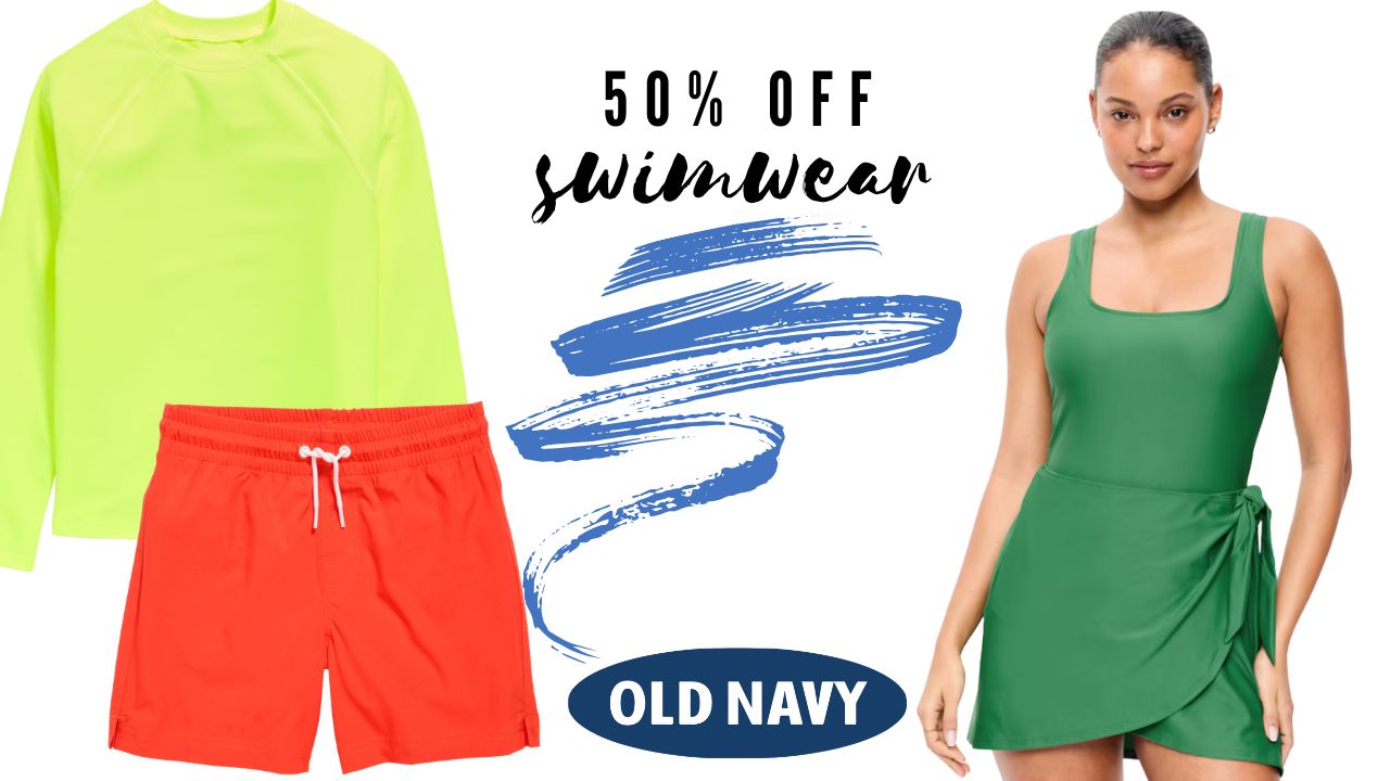 Today only hurry on over to Old Navy because they’re offering 50% off Swimwear for the family!!