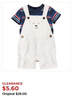 Grab some cute Carter’s Baby Shortalls Sets from Kohls for just $4.48 (reg. $28) after a sale and a promo code. Use promo code QUICK at checkout to save an additional 20% off the clearance price of $5.60.