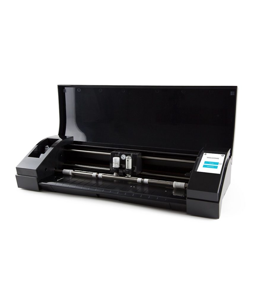 A little bit about this cutting machine… It cuts a variety of flat materials according to patterns provided – you can make stencils, labels, and more. Within this bundle deal, you receive the following: Cameo 3, 12” cutting mat, AutoBlade, crosscutter, 100 exclusive designs (download), one-month Design Store subscription, and tons of other utility tools.