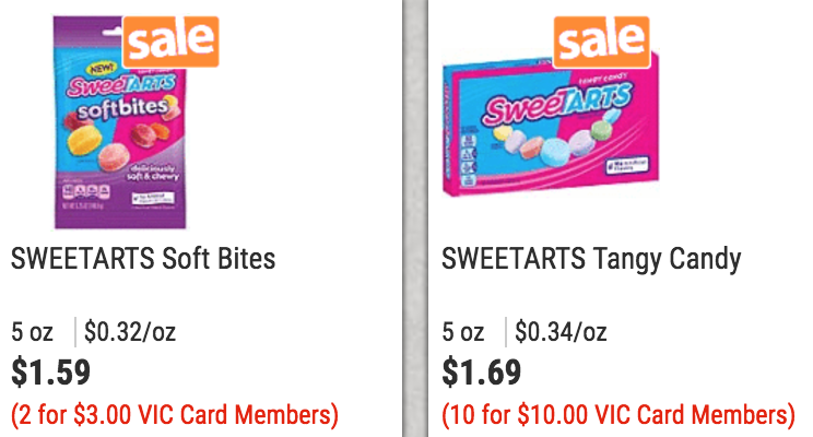 SweetTarts Soft Chews, Ropes or Gummies Peg Bag, 4.5-7 oz, $1.50