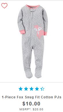 Head over to use this Carter’s coupon code to get 20% off a $50+ purchase. Plus, pajamas are 50% off today, add the coupon code for some great deals!