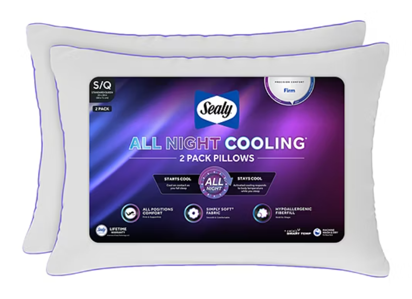 Sealy All Night Cooling 2 Pack Bed Pillow – $60