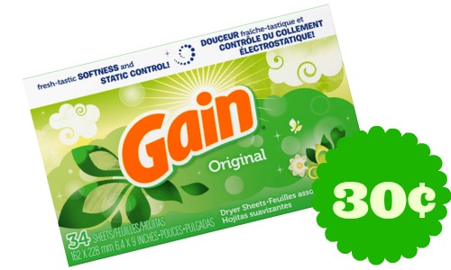 There is a new high-value $5/3 Gain coupon that you can find in your 4/3 P&G insert or print to get 30¢ dryer sheets at Walmart.