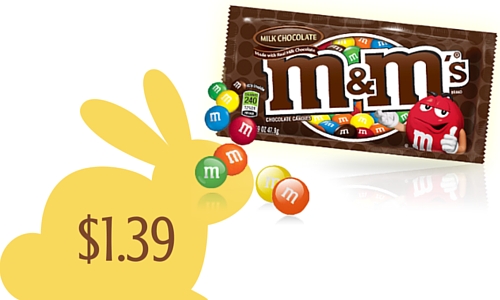 $1/2 M&M’s bags or Dove eggs, Snickers, Twix Easter minis, 8-11 oz+ printable