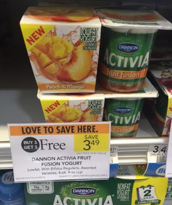 Dannon Activia Yogurt or Fruit Fusion, 4 pk. 4 oz, at $3.49 ($1.74)