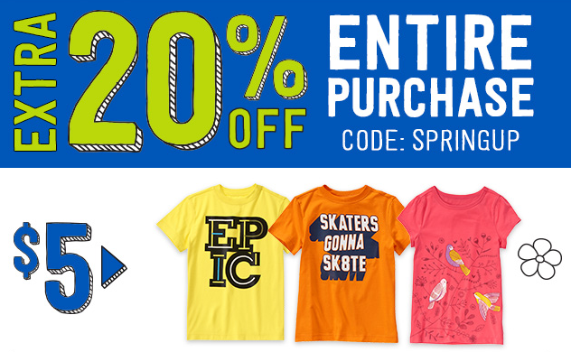 Crazy 8 is offering an extra 20% off your entire purchase when you use coupon code SPRINGUP at checkout.