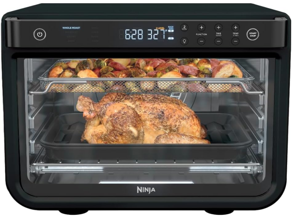 This is a great upgrade to your current air fryer. It has 2-level even cooking, no rotating required—fit a 5-lb chicken and a sheet pan of vegetables, 2 12-in pizzas, or a 12-lb turkey! This is the lowest price it’s been in over a year!