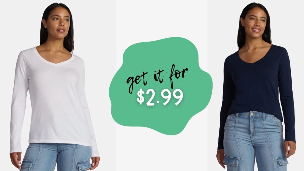 Head to Walmart to get a Time and Tru Women’s Long Sleeve Cotton V-Neck Tee for as low as $2.99 (reg. $5.98).