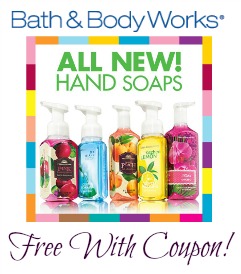 If you are heading to the mall today, take this new Bath & Body Works coupon with you! You can use the coupon to get a FREE Full Size Hand Soap with any purchase.