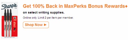 The OfficeMax MaxPerks rewards this week are on writing supplies! You’ll get 100% back through 6/29 and there is the limit of 2 per item.