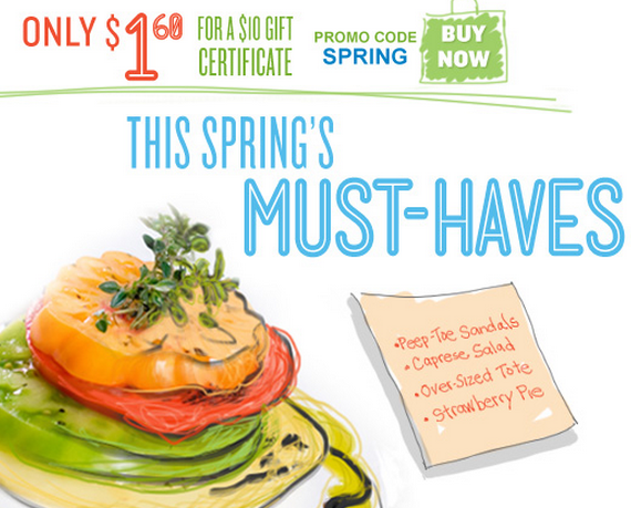 Restaurant.com is celebrating Spring with a new coupon code! Use the code SPRING to bring $10 gift certificates to $1.60.