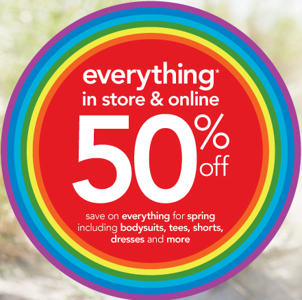 This is a reminder to check out Carter’s who is offering everything in-store and online for 50% off!