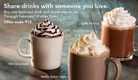 Here is a rare Starbucks printable coupon! Enjoy B1G1 on select drinks after 2 pm through 2/14.